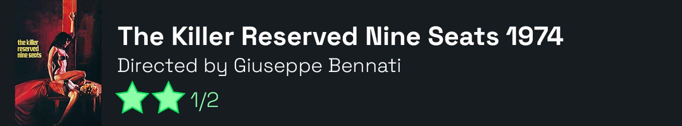If you're in the market for a classy Giallo you can watch with the family, this is in the conversation. Sure, there's some boobs and sex stuff, but it's all a rather quaint and wholesome affair; think more Agatha Christie than Sergio Martino. A bit dull, but silly and solid. Also, it's barely a Giallo? There's no flavor or flair at all, outside of the cool set, there is nothing that separates this from a bad Columbo (There are no bad Columbos.). Whatever, it's part of the Arrow "Giallo Essentials" box set, so who am I to argue?