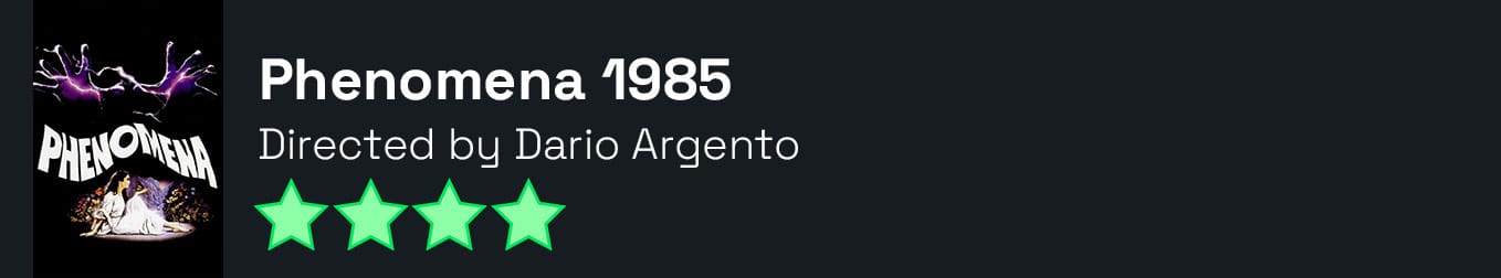 I used to think this was not a Giallo, but I'm not really sure why, all the hallmarks are here: an outsider, detectives, black gloved killer, batshit mystery reveal. It is tangentially supernatural I suppose, but who am I to say that maybe Jennifer Connolly isn't just tuned into bugs and shit. Regardless, this is Argento's most fun good movie. He's got a handful of bad movies that are fun, but PHENOMENA is both.